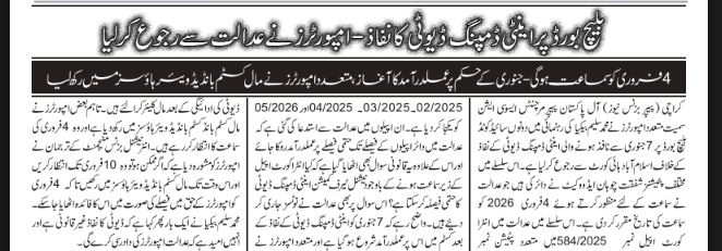 UncategorizedCase against imposition of Anti dumping duty on bleach board fixed for 4th February 2026 in Islamabad High Court. Posted on January 29, 2026January 31, 2026 by [email protected] [email protected] Brazil’s offset paper added in the ruling # 2027/2025 dated 28-11-2025 with value $ 782 pmt.